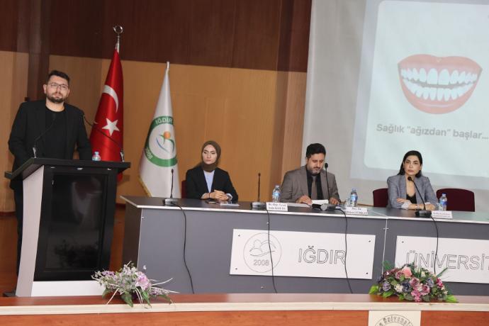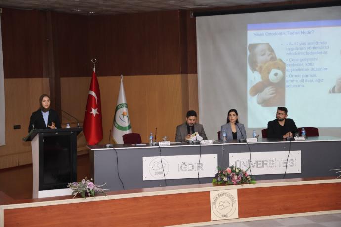 Panelde, Dr. Öğr. Üyesi Cem Taşkın, Dr. Öğr. Üyesi Seda Kotan ve Dr. Öğr. Üyesi Gizem Karagöz Doğan uzmanlık alanları doğrultusunda ağız ve diş sağlığına ilişkin sunumlar gerçekleştirdiler.